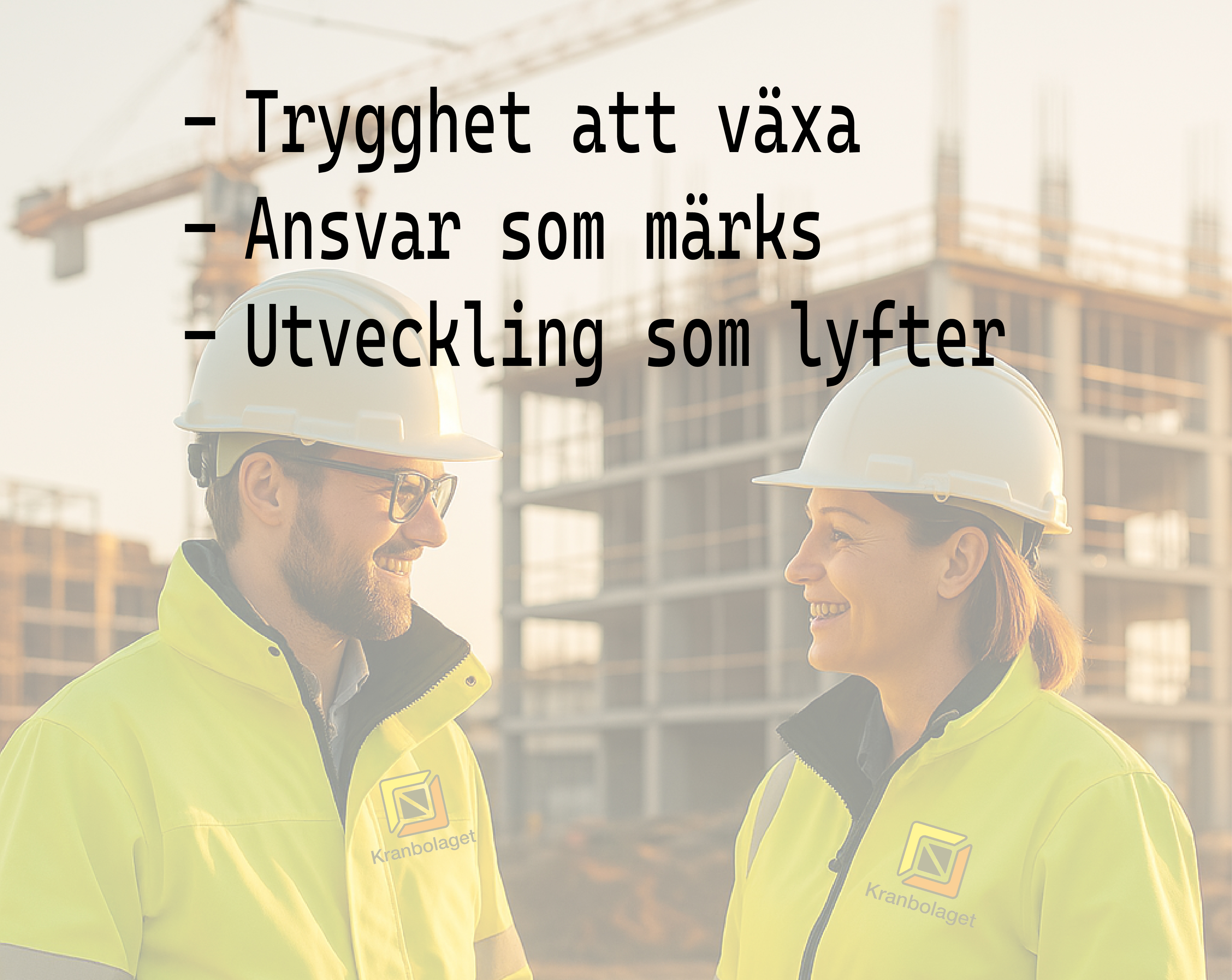 På Kranbolaget erbjuds du trygghet och ansvar - du får växa i en kultur där säkerhet, engagemang och kunskap lyfter både människor och branschen. Här blir du en del av något större; ett företag som utvecklar både medarbetare och framtidens förare.